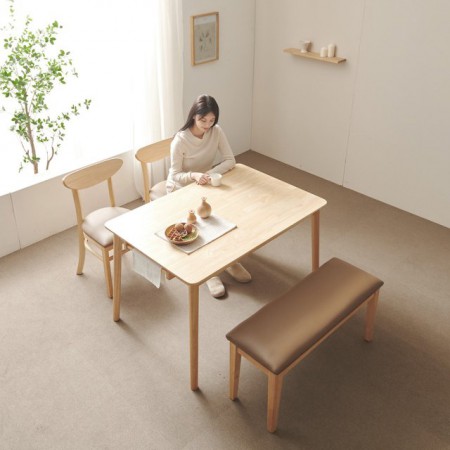보니애가구 노블 고무나무 원목 4인 식탁세트 벤치형