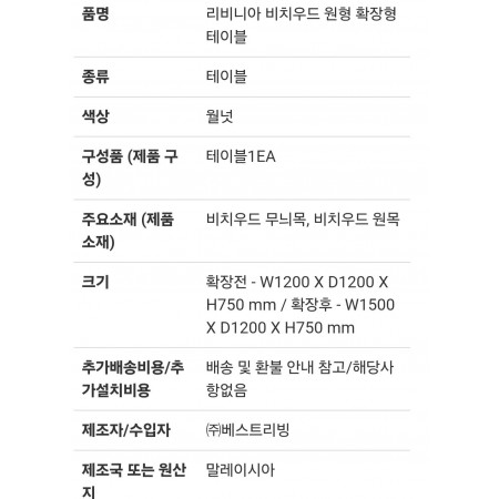 코스트코 38만원 리비니아 비치우드 원형 확장형테이블 > 물품거래